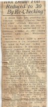 Newspaper clipping from the Tulsa Daily World published June 3, 1921, and entitled "Local Red Cross Is Reorganized; Ready for Tremendous Task of Uniting Families of Riot Victims." This article provides details concerning the reorganization of the Tulsa County Chapter of the American Red Cross to meet the relief needs of approximately 8,000 homeless African Americans following the Tulsa Race Massacre. The general headquarters of the organization is located at 4th Street and South Cincinnati Avenue, with Clark Field as general director and Newton Robert Graham in charge of the detention camps. The report also states that Robert H. Woods will be in charge of the bureau of identification to aid individuals with finding their family members. Mrs. W. D. Godfrey is named as head of the Red Cross nursing department. The article also provides information on the establishment of a relief depot at the site of the Booker T. Washington High School. The report lists Dr. Paul Brown in charge of the Red Cross hospital for African Americans, located in the old Cinnabar hospital on North Main Street. The article includes specifics of several other Red Cross staff members and services. The back of the newspaper clipping contains a second article entitled "Riot Death Toll Reduced to 30 By Re-Checking." The article states that Adjutant General Charles Barrett disclosed that as of yet, there are thirty dead individuals (ten Caucasians and twenty African Americans) reported from the violence in Tulsa. The report stated that the final list of dead is not thought to exceed forty. The article includes information on the deaths and burials of specific African Americans, including eight who were buried in the potter's field of Oaklawn Cemetery. It also lists the dead at Mowbray Parlors (Mowbray Funeral Home) and Mitchell-Fleming Morgue. |